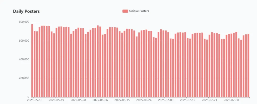 Це логічно, оскільки дані також показують, що загальний обсяг постів у Bluesky знижується, незважаючи на приплив нових користувачів.