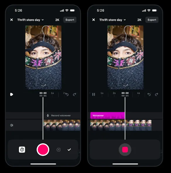 Як можна побачити в прикладах, Edits тепер дозволяє легко повторно записувати й розміщувати закадровий голос безпосередньо в стрічці, а також надає можливість використати зворотний відлік, щоб краще розрахувати момент початку.