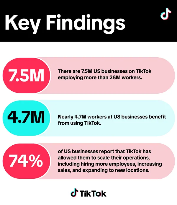 👩‍💻 4,7 млн работников в американских компаниях получают выгоду от использования TikTok — от продаж до продвижения бренда.